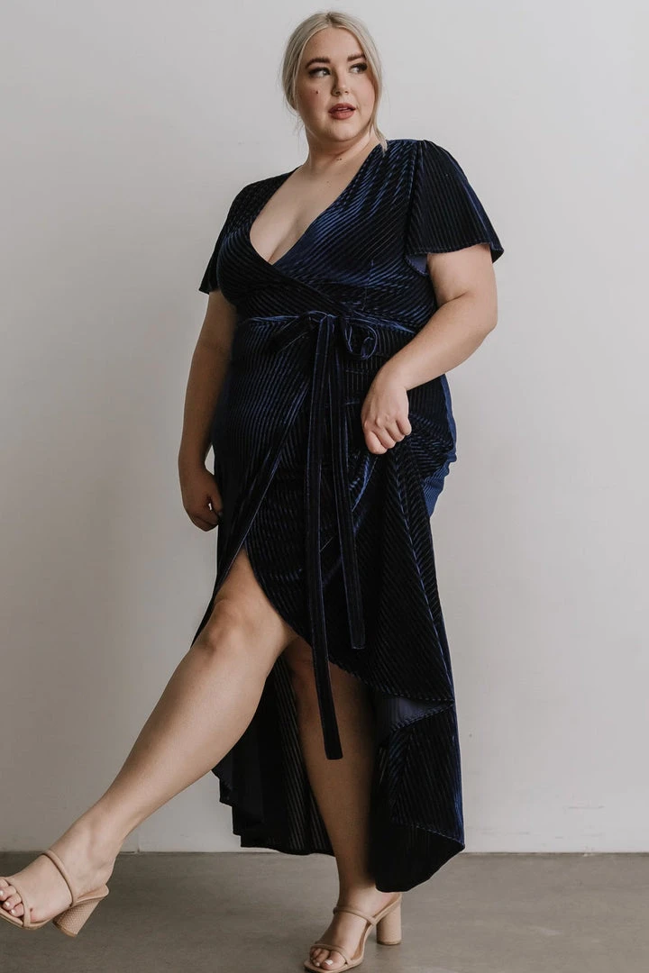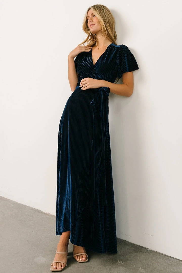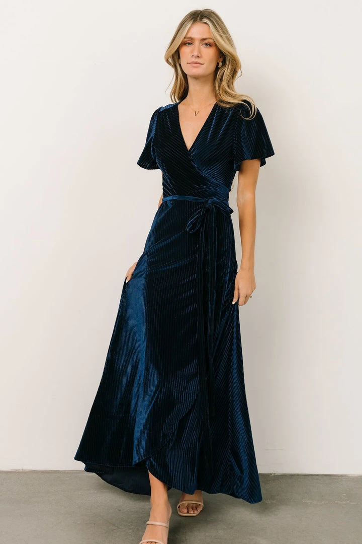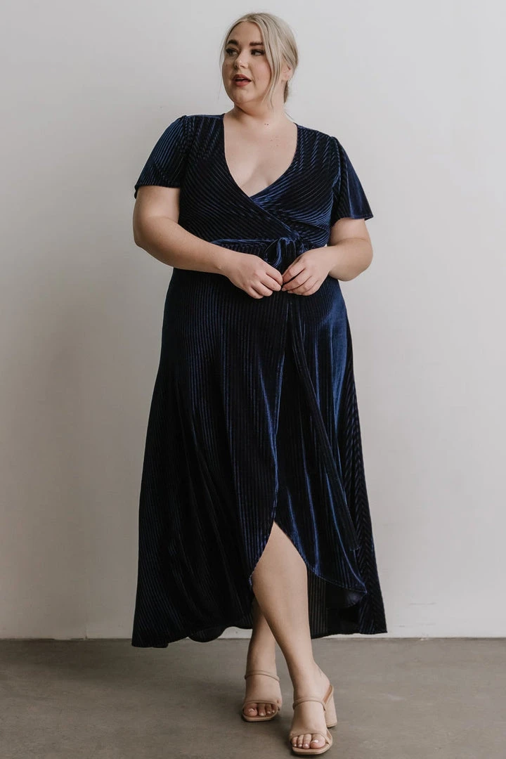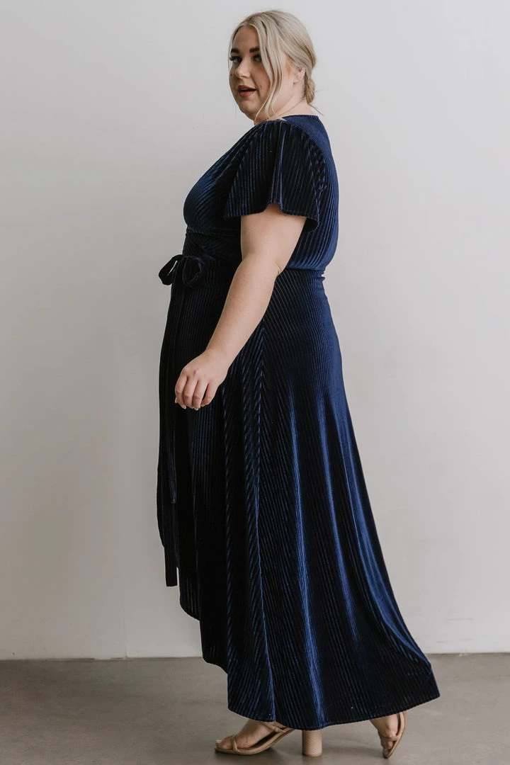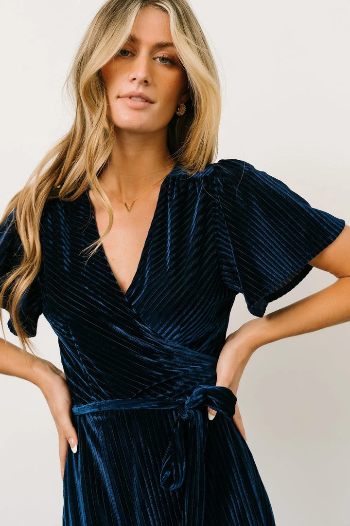 BB Custom Andi Ribbed Velvet Wrap Dress | Navy