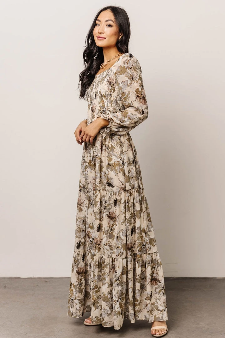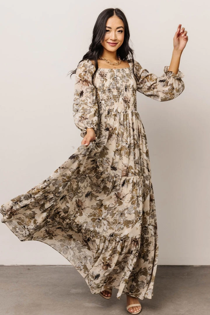 BB Custom Angelica Smocked Maxi Dress | Olive Floral Dresses