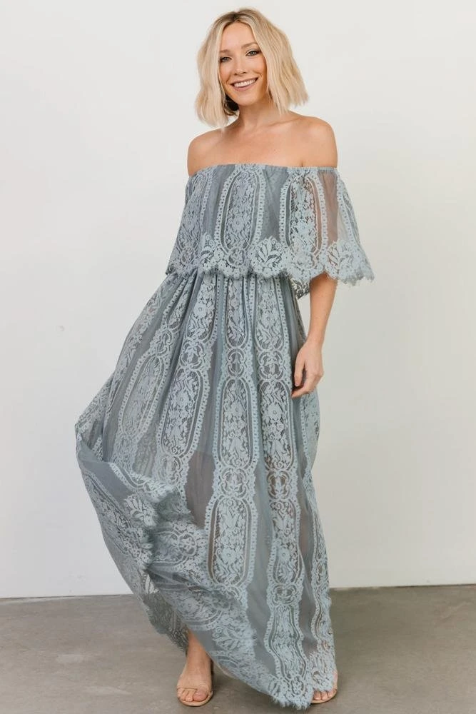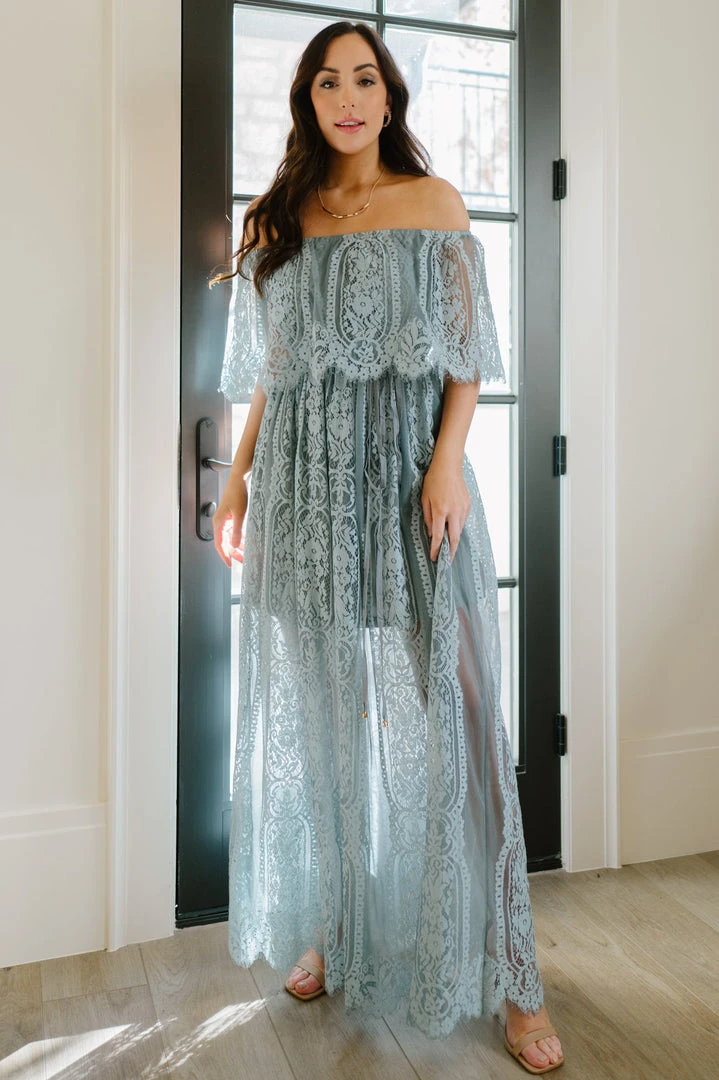 BB Custom Caroline Lace Maxi Dress | Dusty Blue Dresses