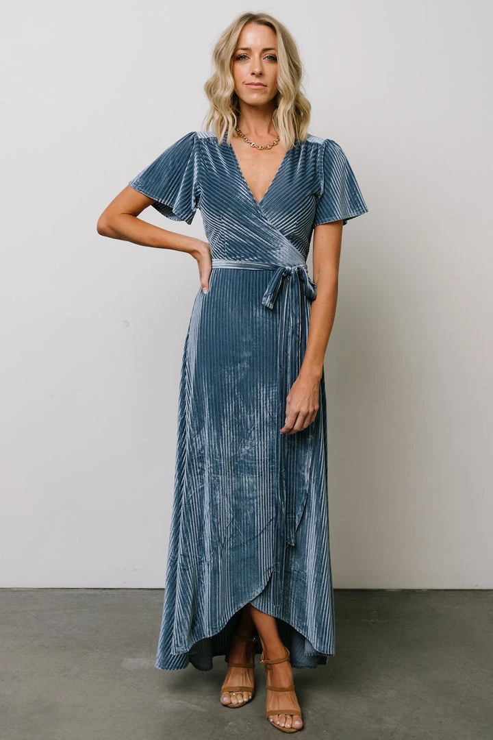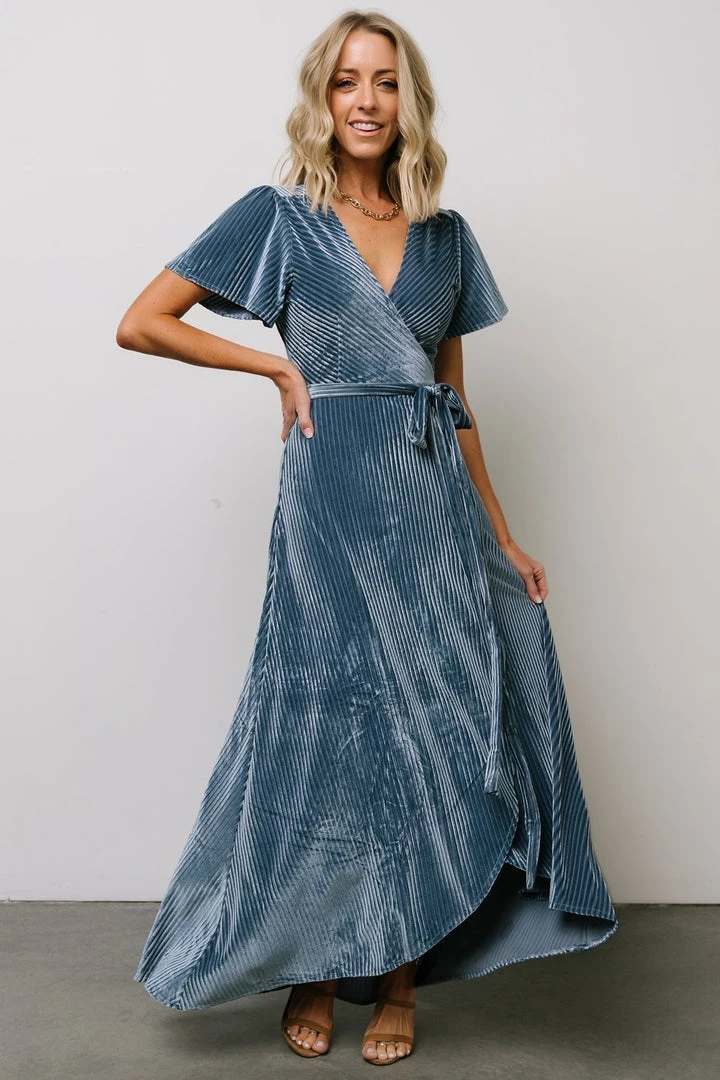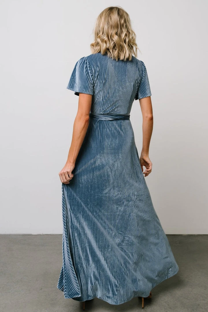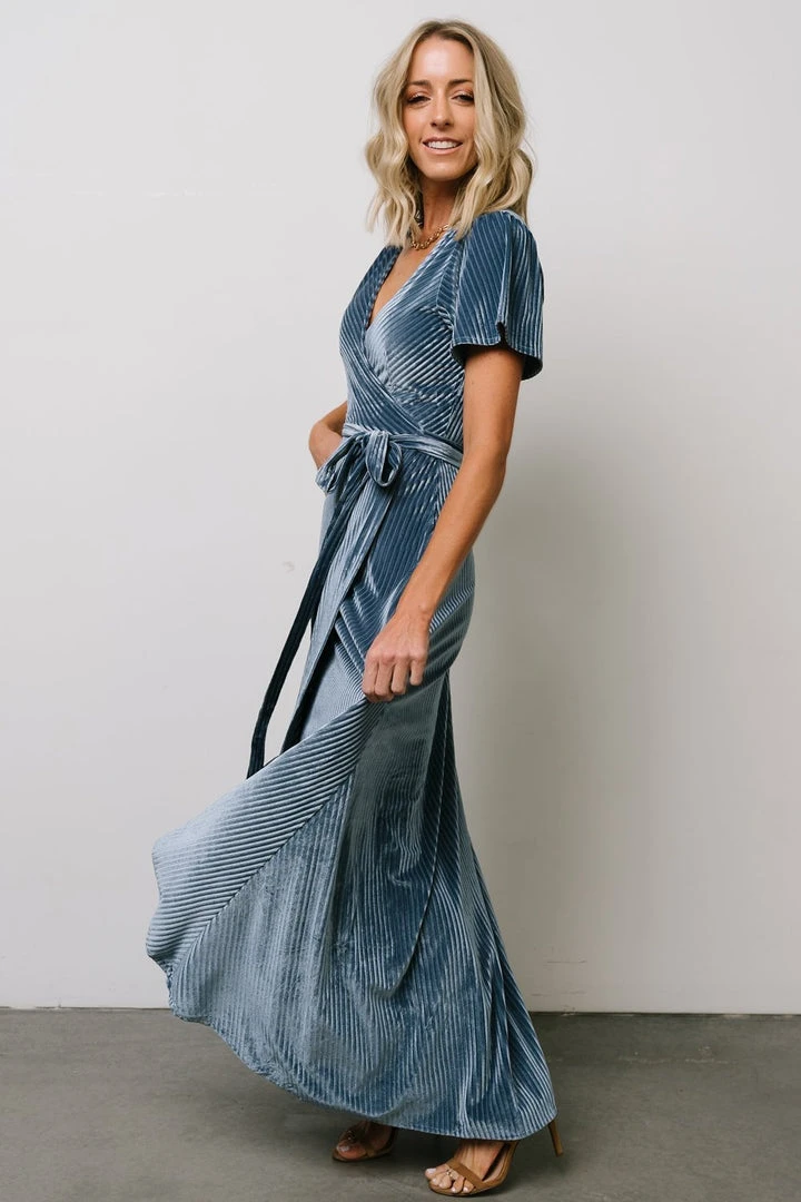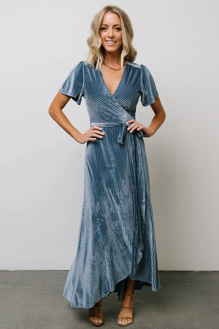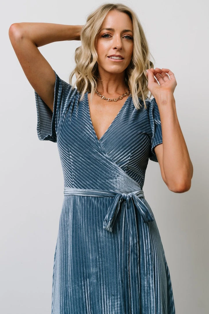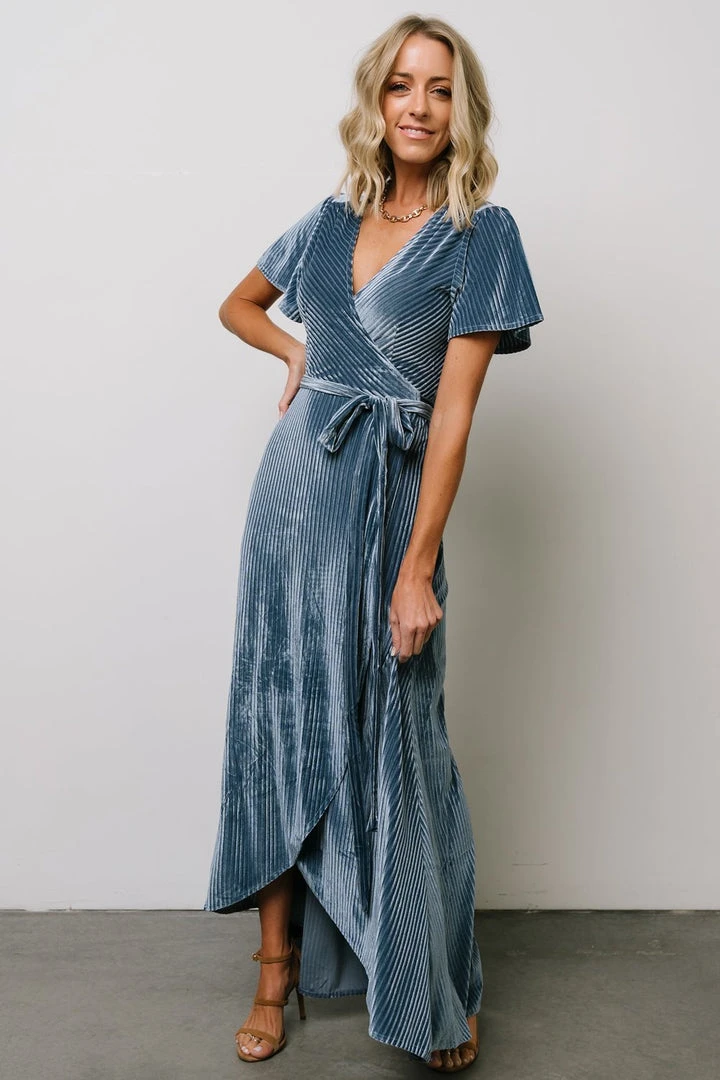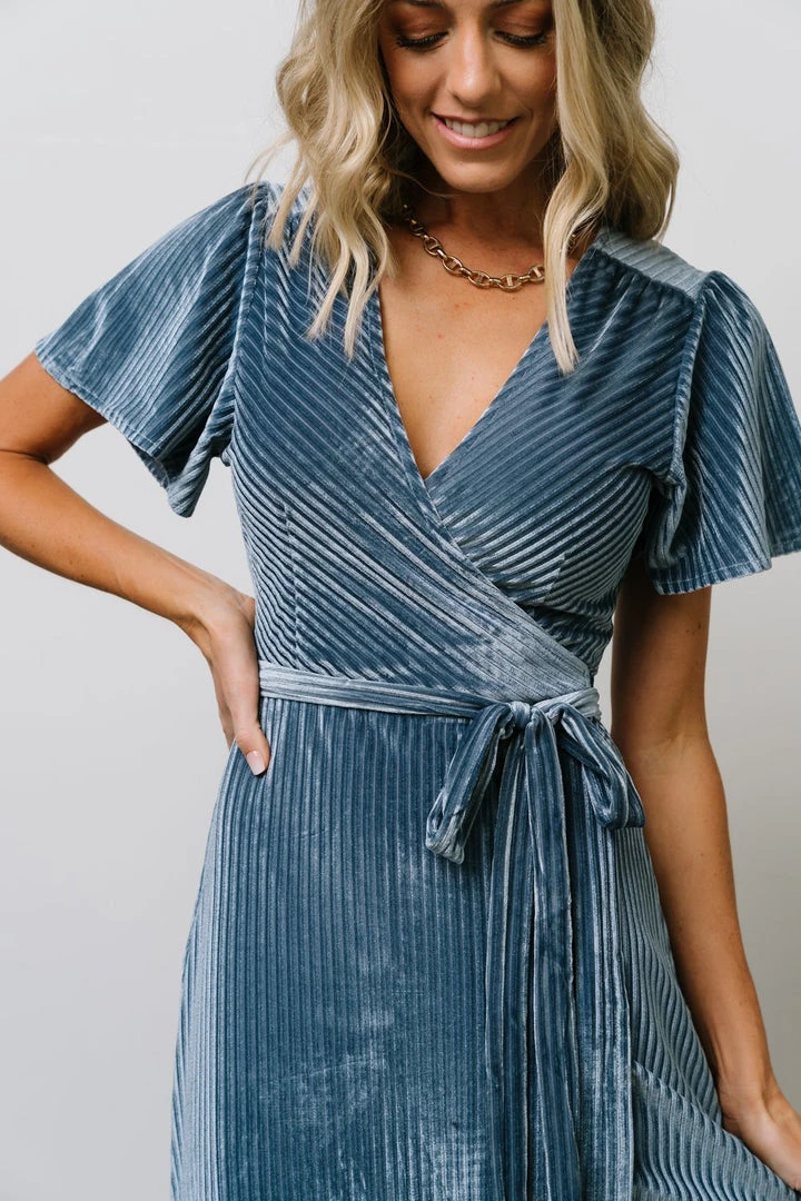 BB Custom Dresses Andi Ribbed Velvet Wrap Dress | Blue
