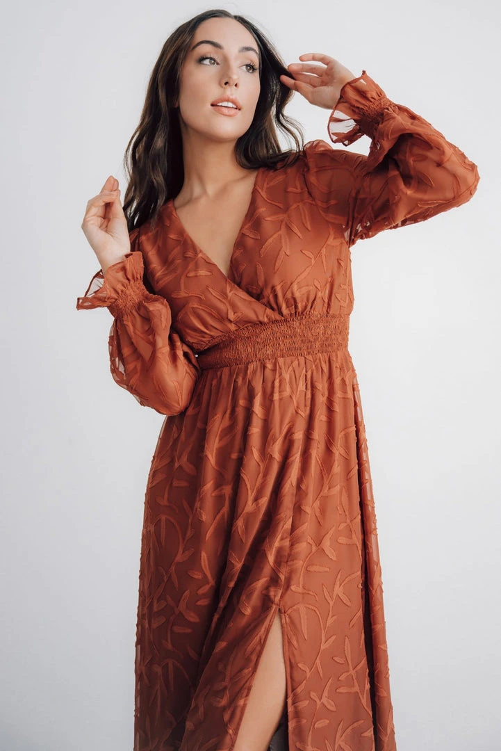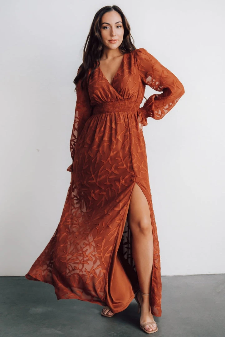 - Gorgeous, rust colored flowing burnout, textured materialÂ