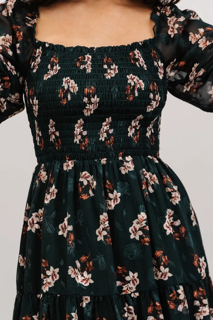BB Custom Dresses Fabian Jacquard Midi Dress | Dark Green Floral