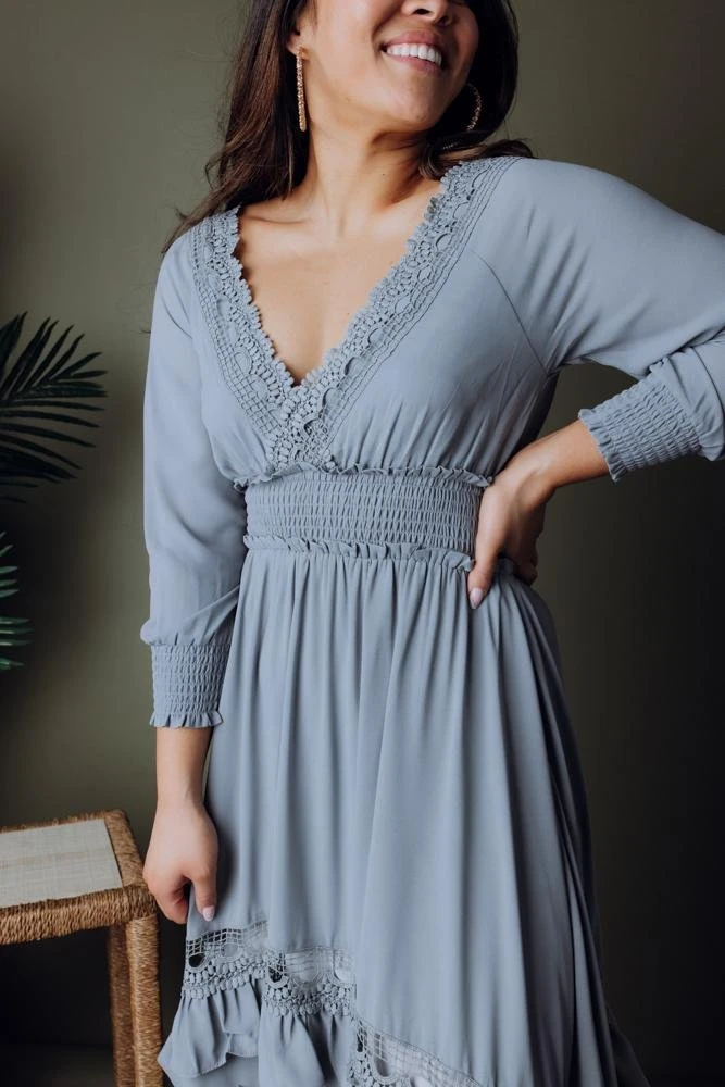 Be the first to review “BB Custom Dresses Pippa Ruffle Maxi Dress | Dusty Blue” Cancel reply