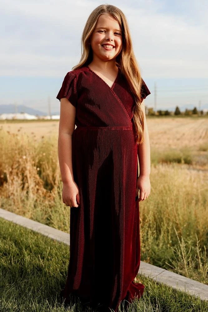 BB Custom Dresses Youth Athena Pleated Maxi Dress | Mulberry