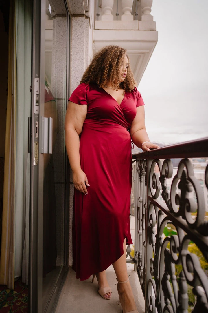 Be the first to review “BB Custom Krystal Satin Wrap Gown | Wine” Cancel reply