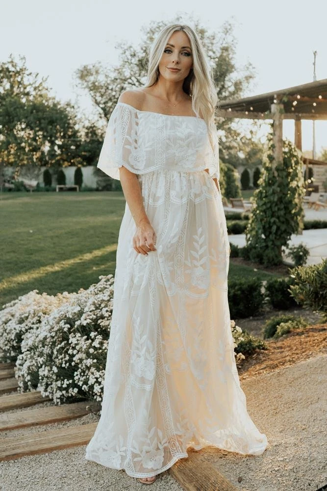 BB Custom Leon Off Shoulder Maxi Dress | White Dresses