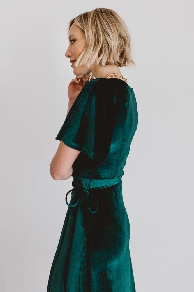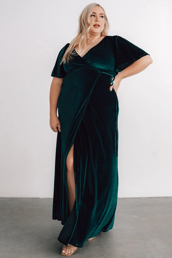 BB Custom Meghan Velvet Wrap Maxi Dress | Emerald Dresses