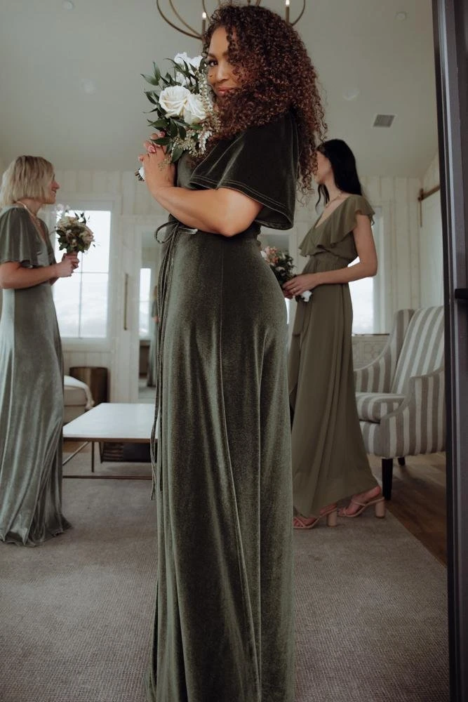 BB Custom Meghan Velvet Wrap Maxi Dress | Olive