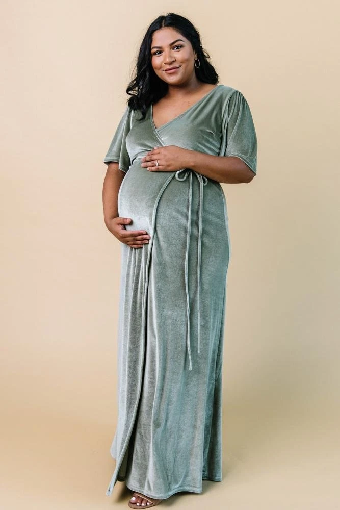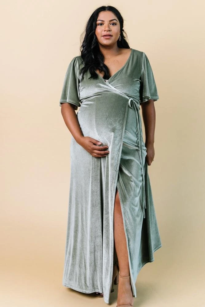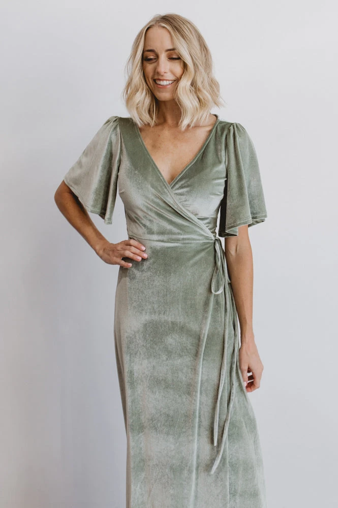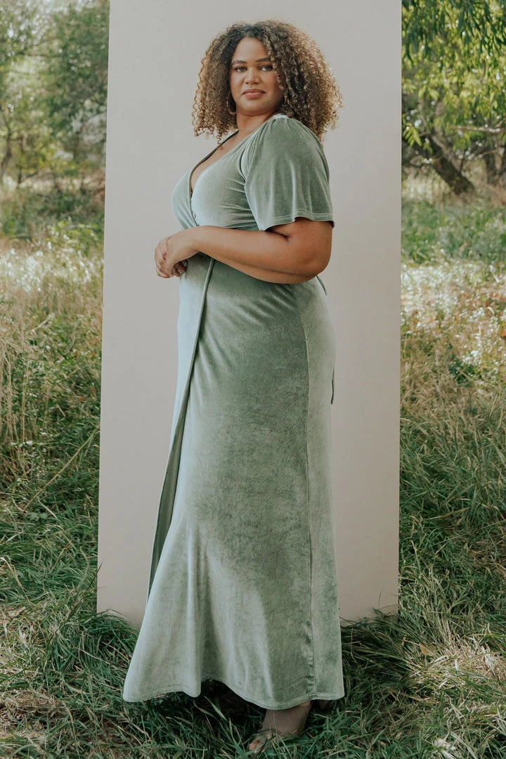 BB Custom Meghan Velvet Wrap Maxi Dress | Sage Dresses