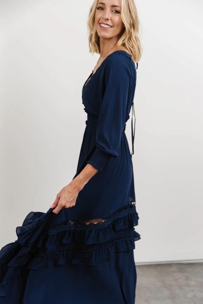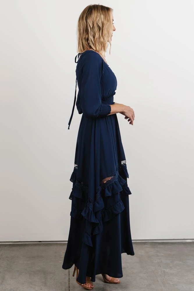 BB Custom Pippa Ruffle Maxi Dress | Navy