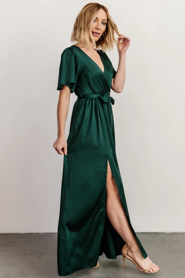 BB Custom Sicily Satin Maxi Dress | Emerald