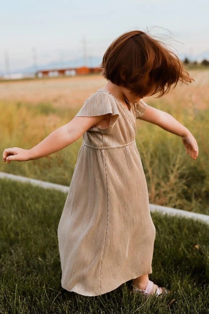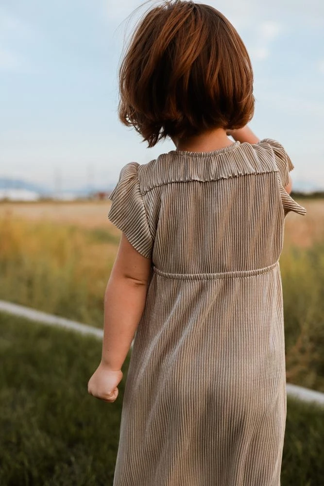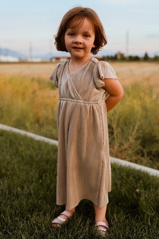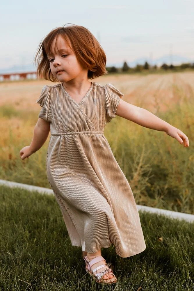 BB Custom Toddler Athena Pleated Midi Dress | Gold Flower Girl