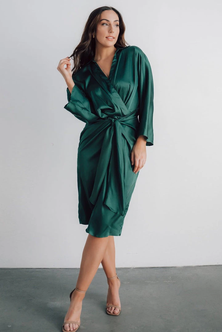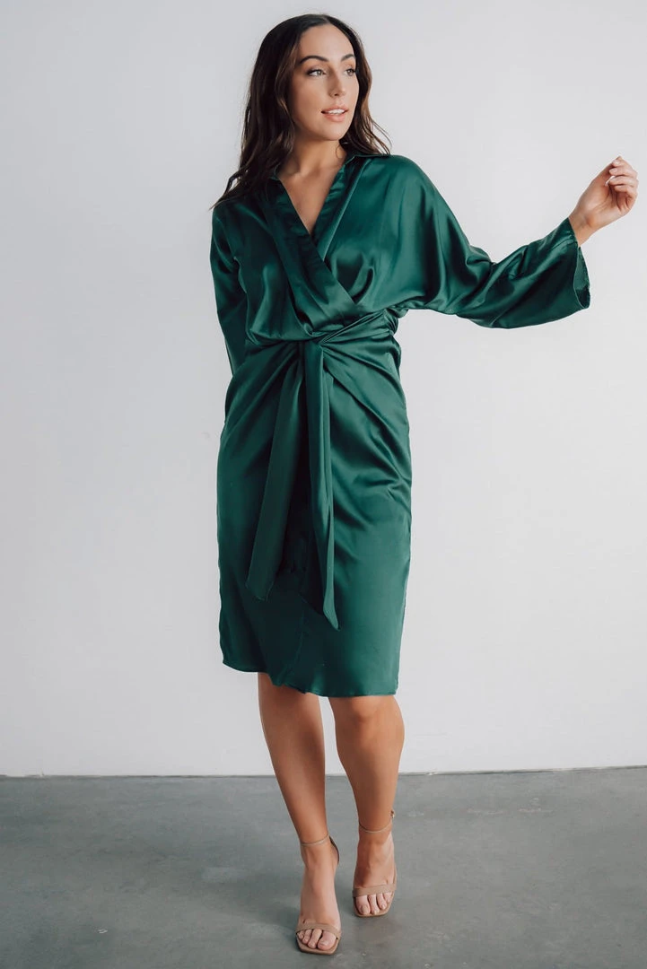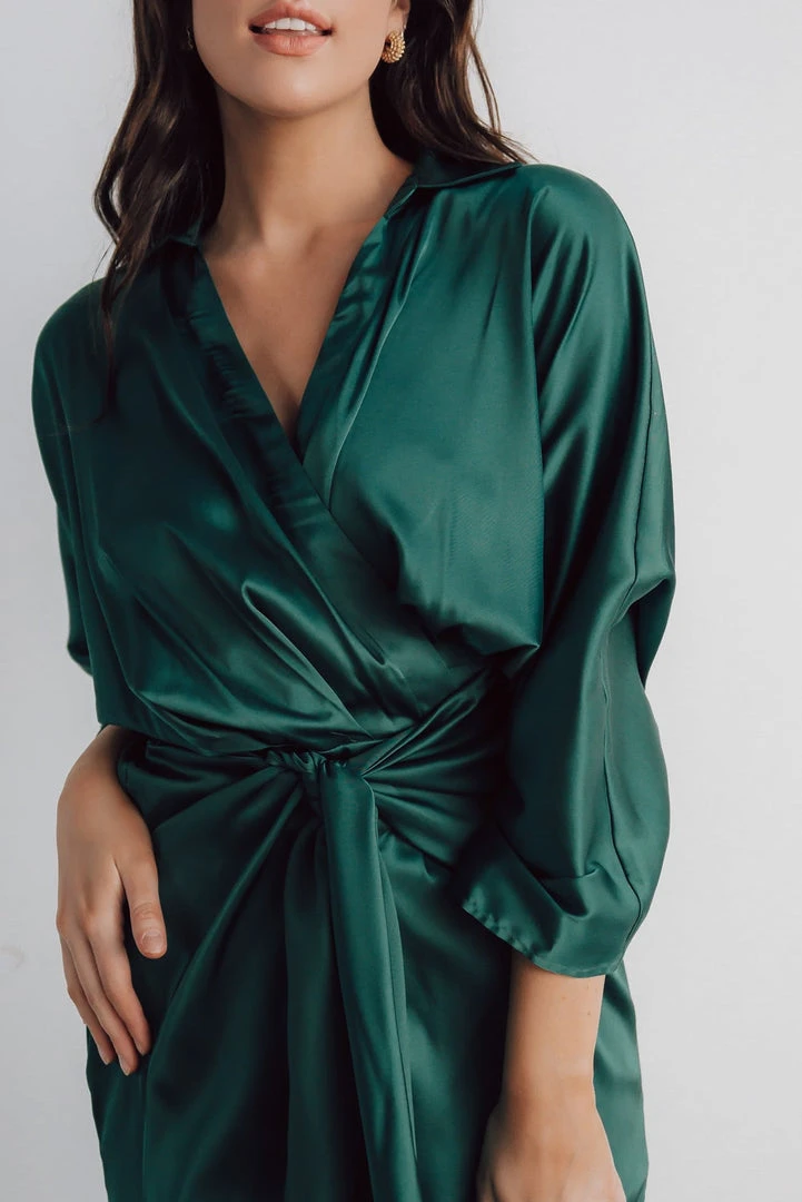 DD Luanna Satin Midi Dress | Hunter Green Dresses