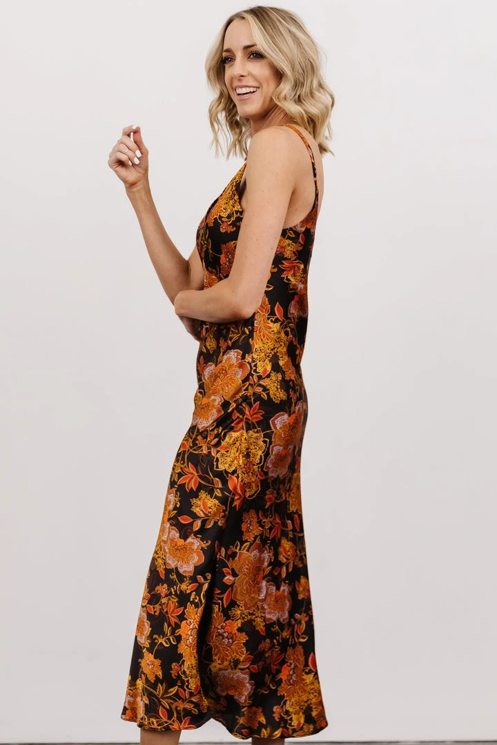 DF Deja Tank Midi Dress | Black + Gold Multi Print