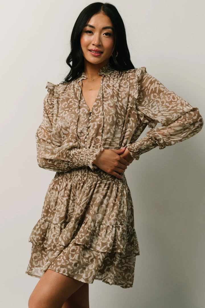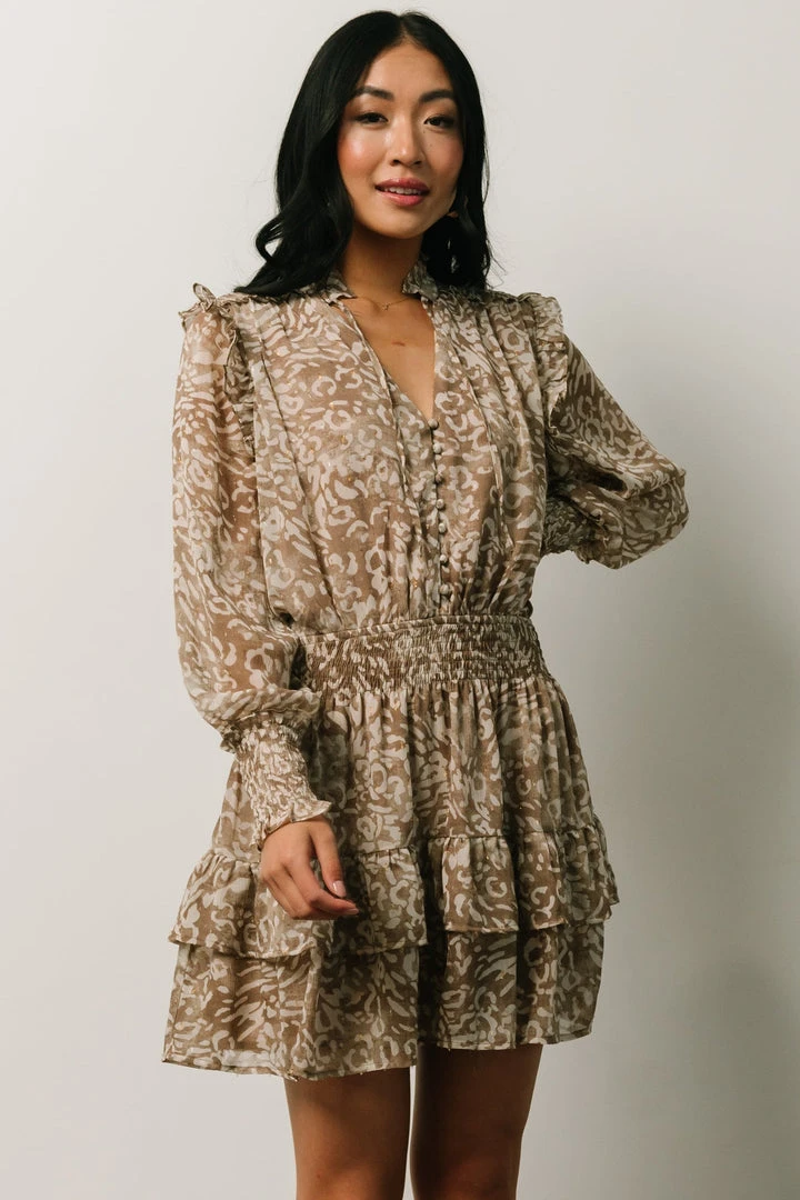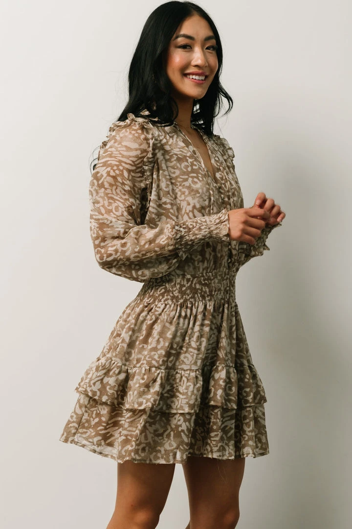 DF Ultima Mini Dress | Taupe Leopard Print