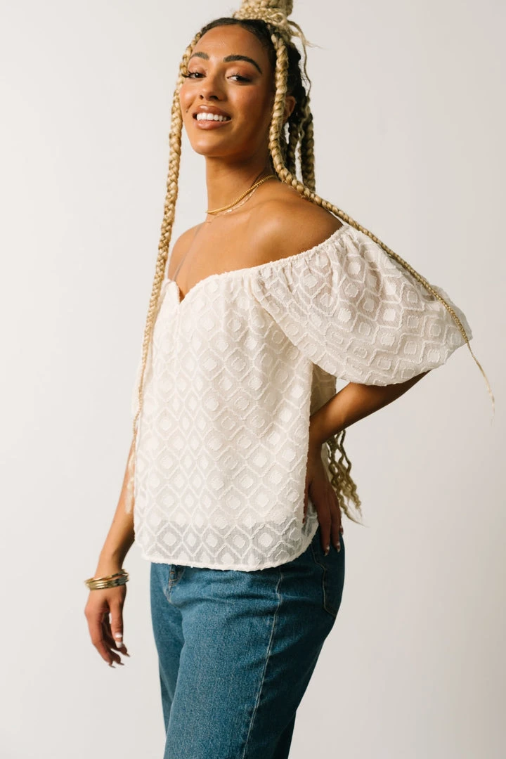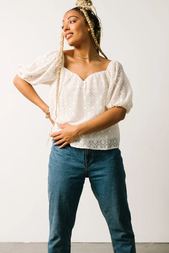 FT Boho Caitlyn Puff Sleeve Sweetheart Top | Ivory