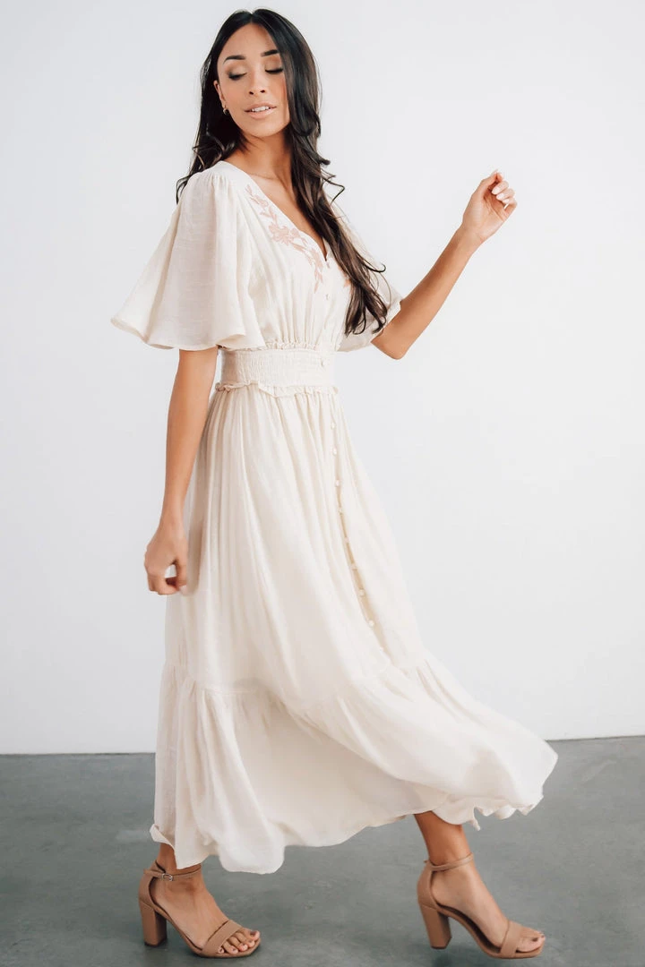 FT Dresses Luz Embroidered Maxi Dress | Natural