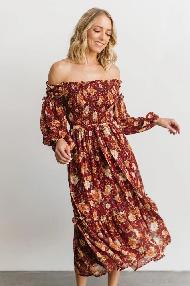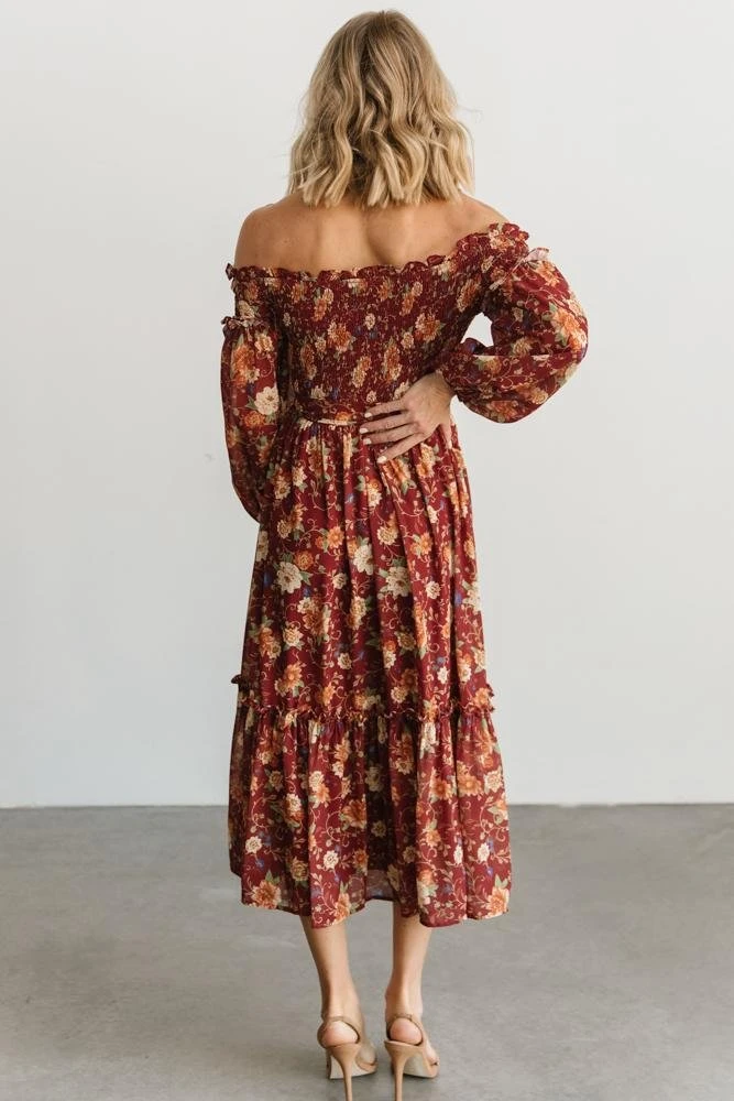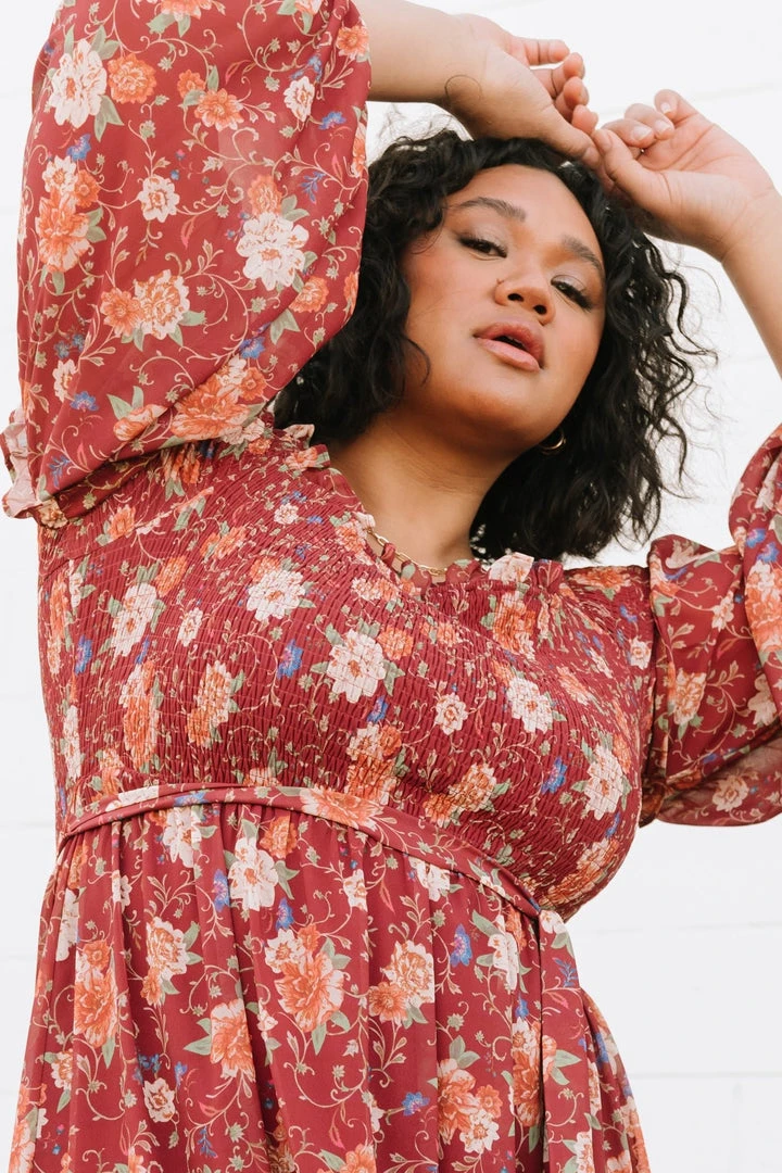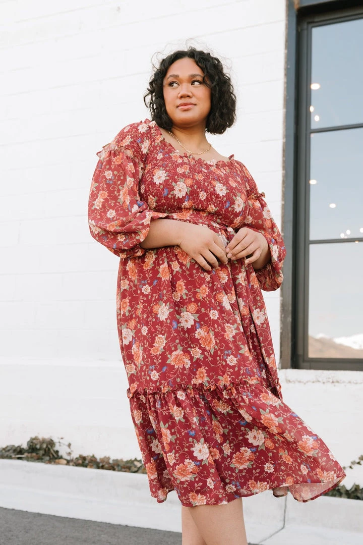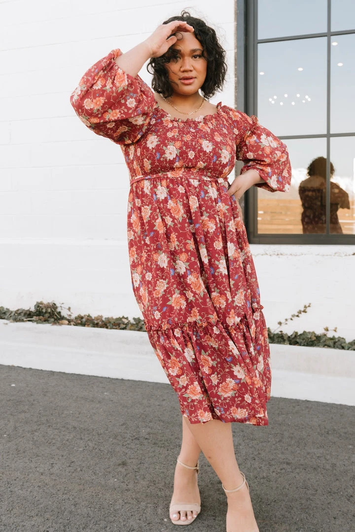 FT Dresses Yorkley Smocked Midi Dress | Burgundy Floral