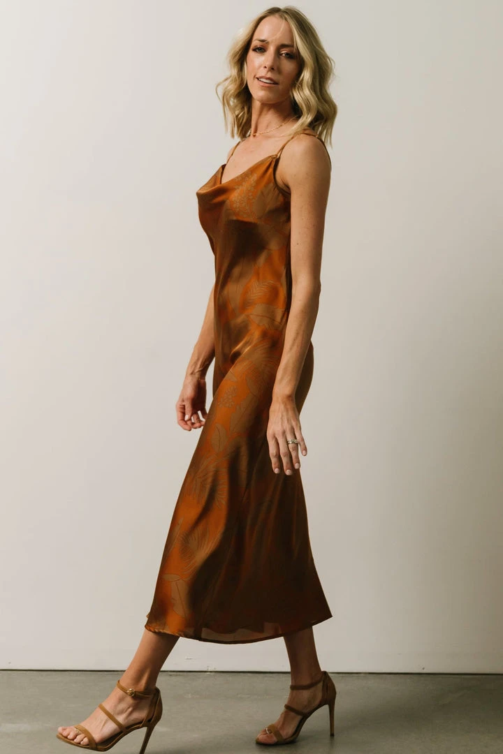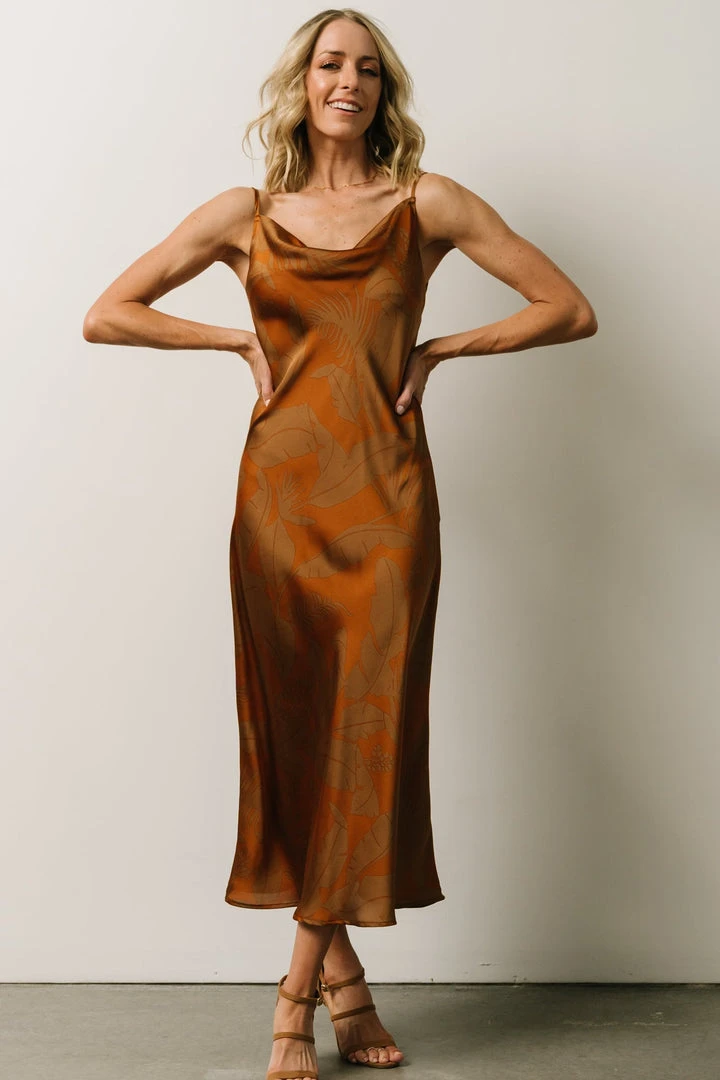 FT Penny Cowl Neck Midi Dress | Copper Print Dresses