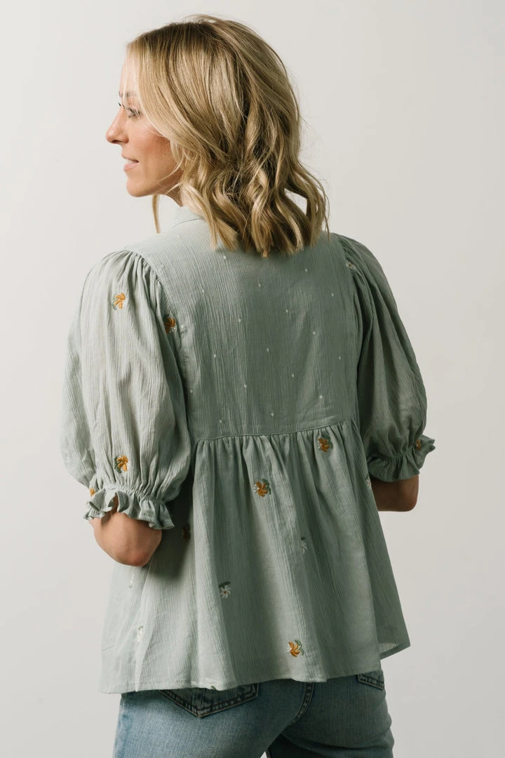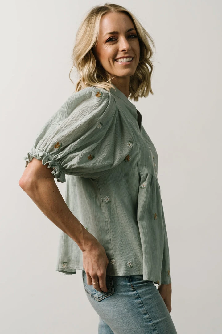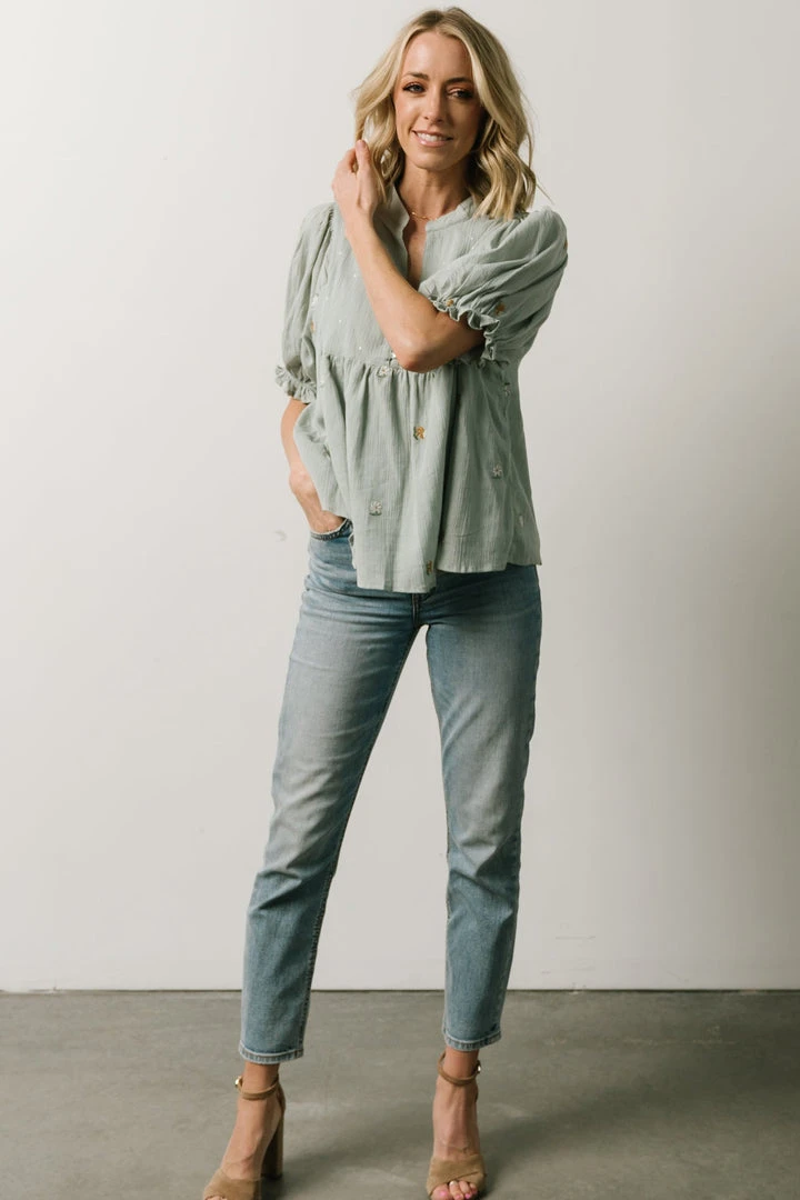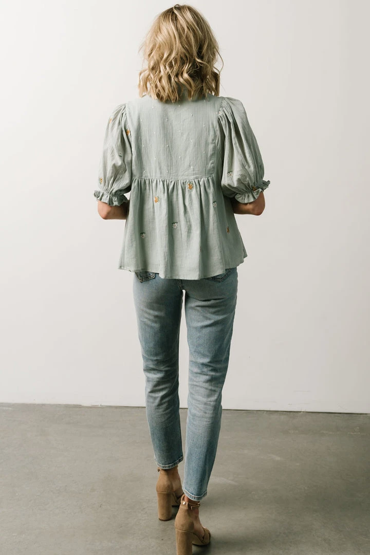 IL Bernadette Embroidery Top | Light Sage Vacation