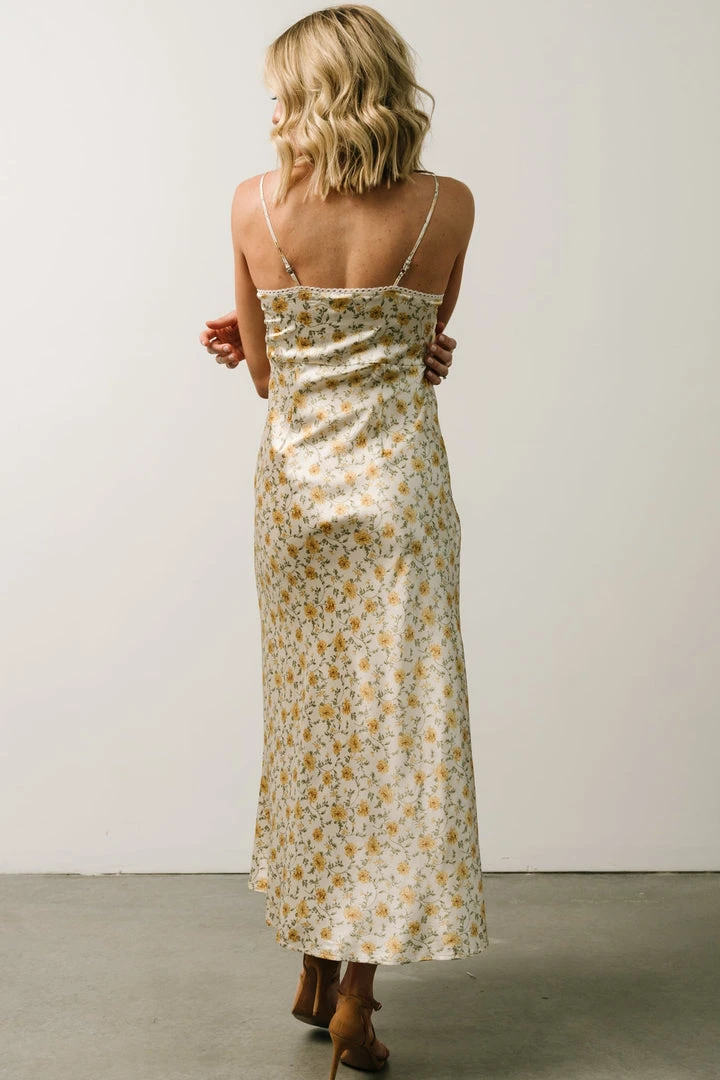 IL Bettie Bias Cut Midi Dress | Cream + Yellow Multi Floral Dresses