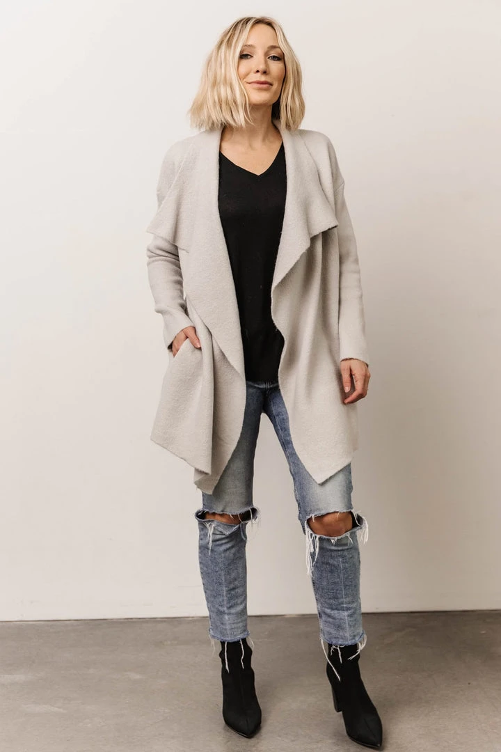 IL Ellison Lapel Cardigan | Light Gray Tops