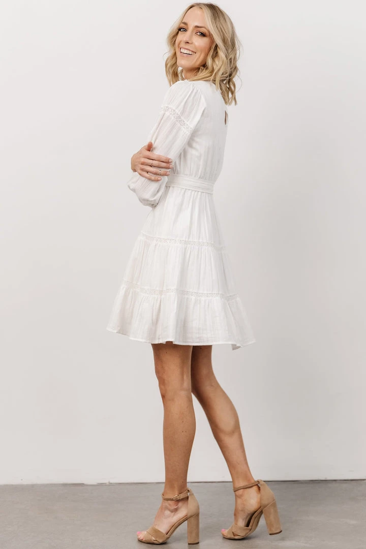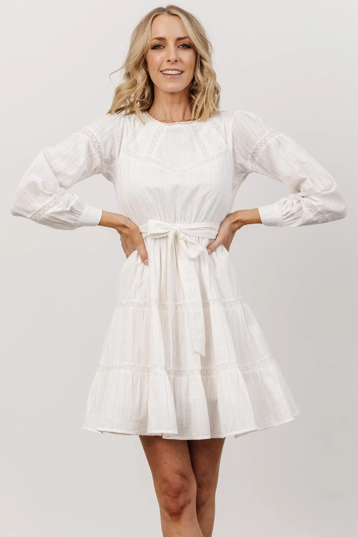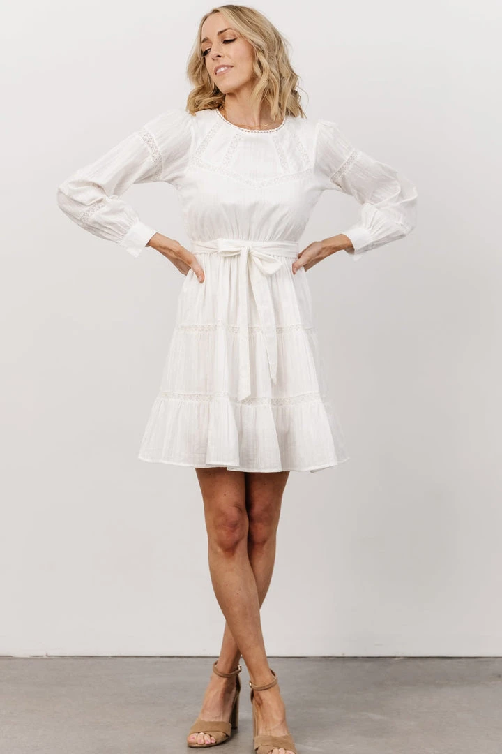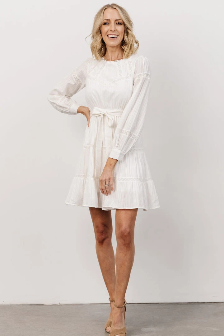IL Keri Long Sleeve Short Dress | Off White Dresses