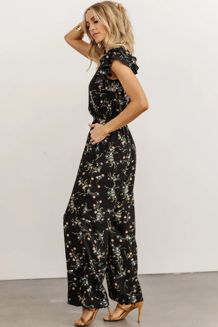 KM Silvia Ruffle Jumpsuit | Black Floral Mother Of The Bride