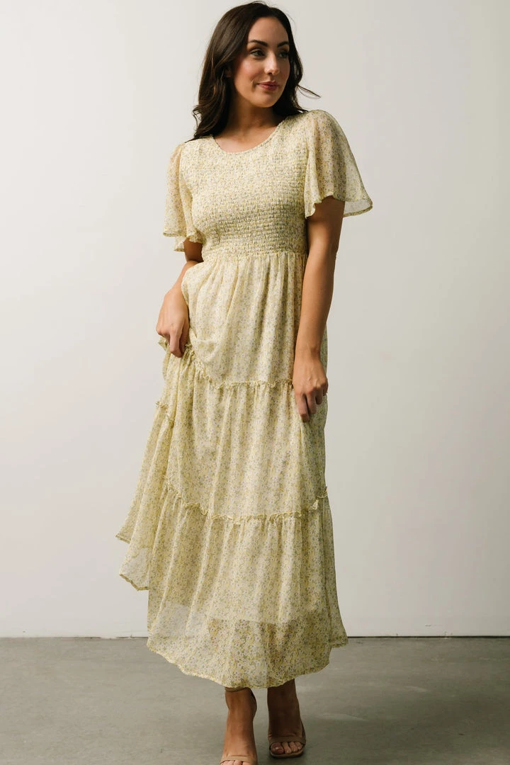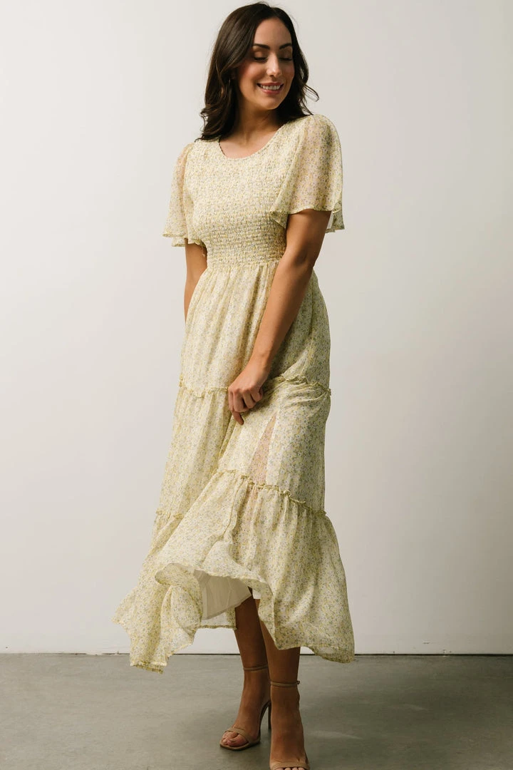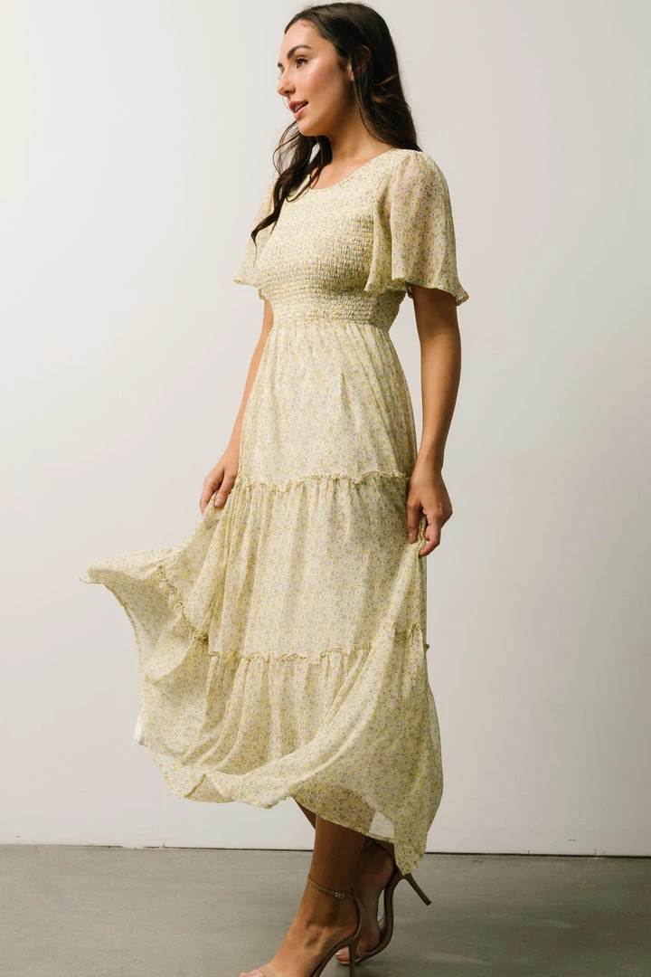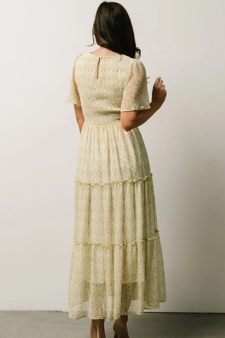Leilani Tiered Midi Dress | Yellow + Green Multi Floral Dresses