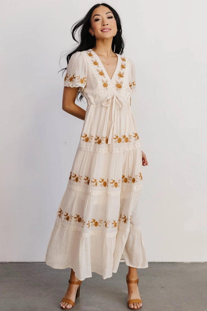 POL Dublin Embroidered Maxi Dress | Natural Dresses