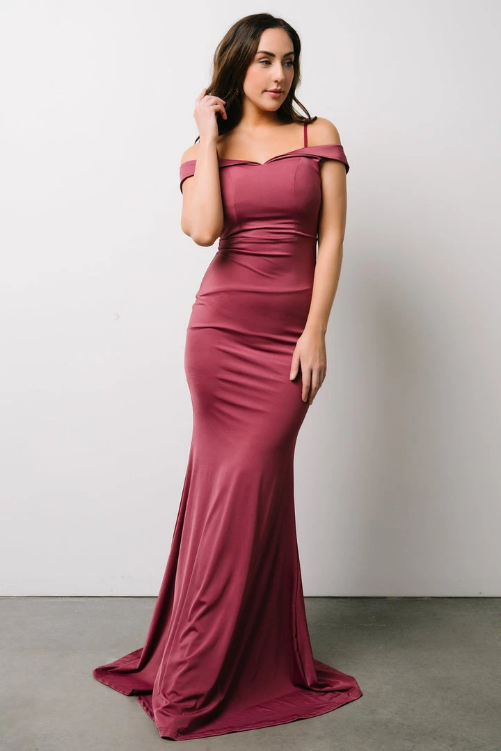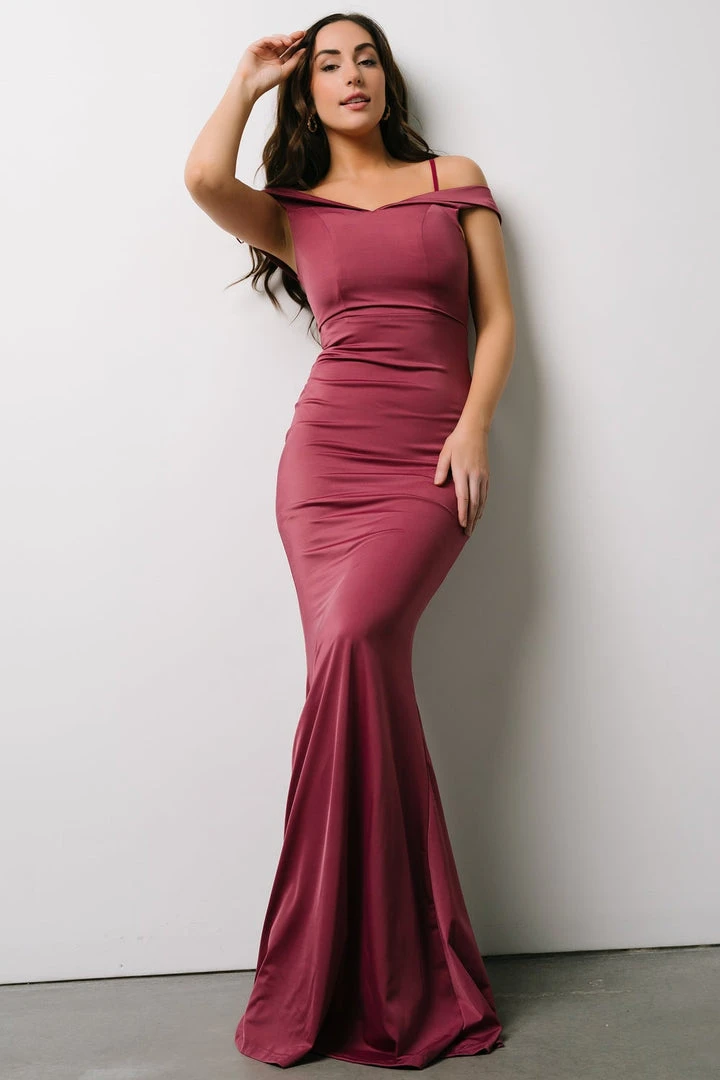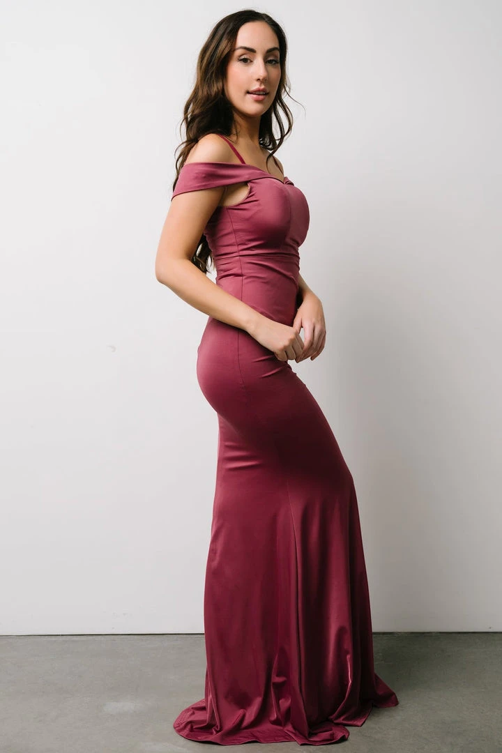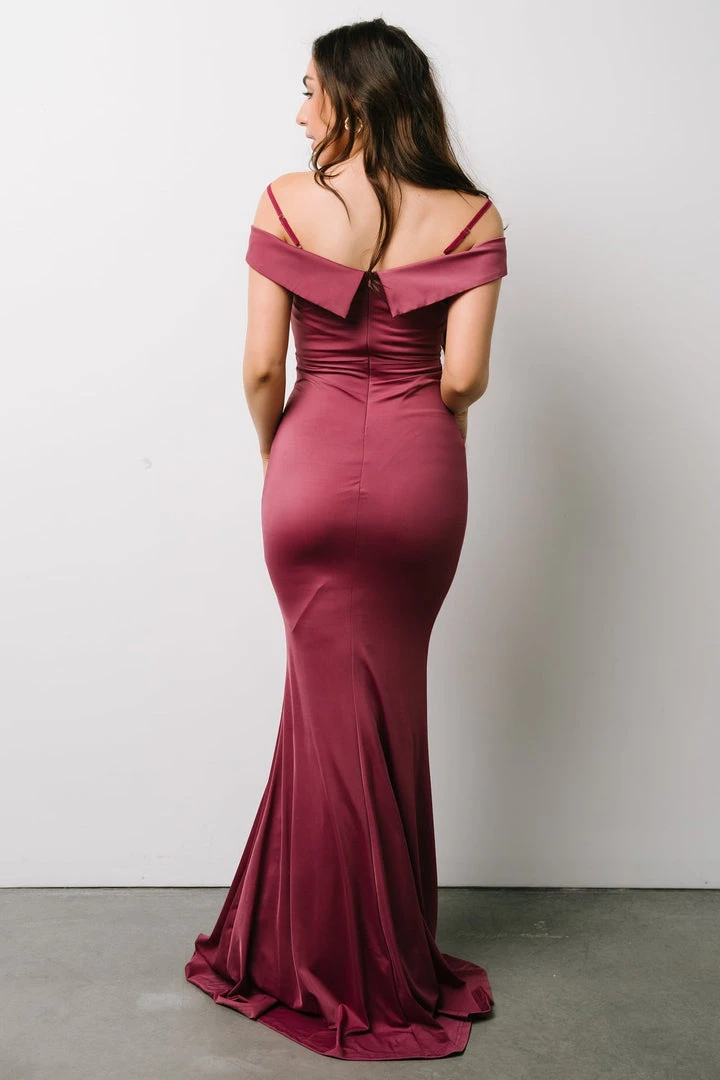 FINAL SALE. Get ready for your next night out in a dress that makes you feel and look good! This dress includes everything that you need to be ultra-confident. The Reims Dark Mauve Bodycon Gown features stunning material, a sexy fit, and romantic detail.