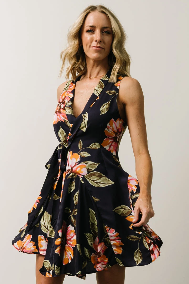 Soi Chrissy Mini Wrap Dress | Navy Floral Dresses