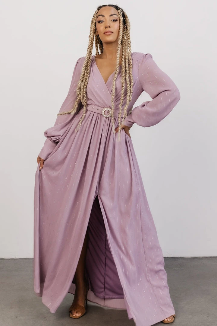 Soi Dresses Charity Shimmer Gown | Lilac + Silver